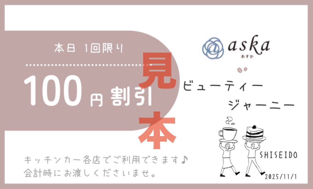 店内の商品を3,300円(税込)以上お求めで、キッチンカーで利用出来る100円割引クーポン券をプレゼント🎁